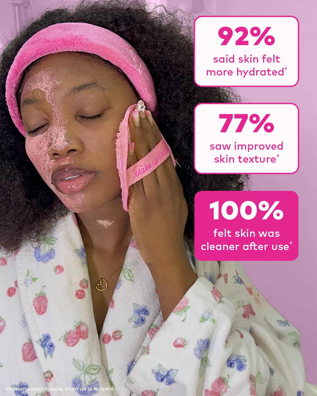 Made with millions of cloud-soft fibers and powered by SmartErase™ Technology, each reusable cloth lifts makeup, dirt, and oils from pores for a deep yet gentle clean. One side removes makeup, while the other side exfoliates, leaving your skin fresh, smooth, and glowing — no oils, no chemicals, and absolutely no waste.