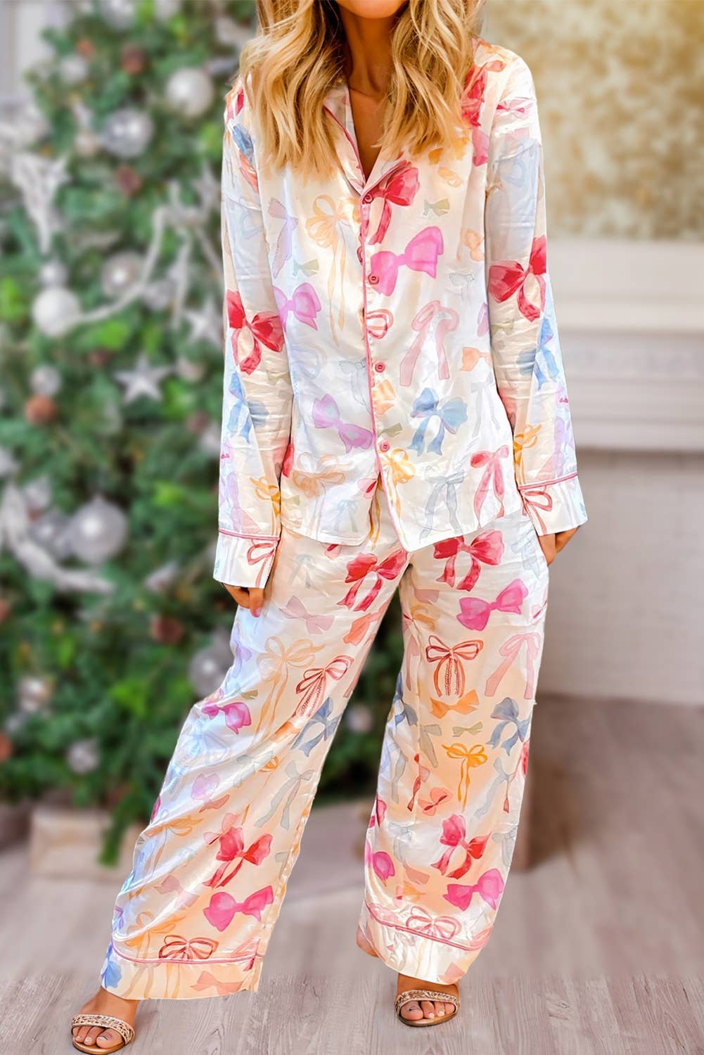 Drift off in dreamy comfort with our Bow Knot Print Pajama Set! Featuring a charming bow pattern and ultra-soft fabric, this set is perfect for cozy nights and lazy mornings. The relaxed fit and breathable material make it a must-have for lounging in style. Whether you're sipping coffee or settling in for beauty sleep, this pajama set wraps you in comfort with a touch of elegance! 🎀✨