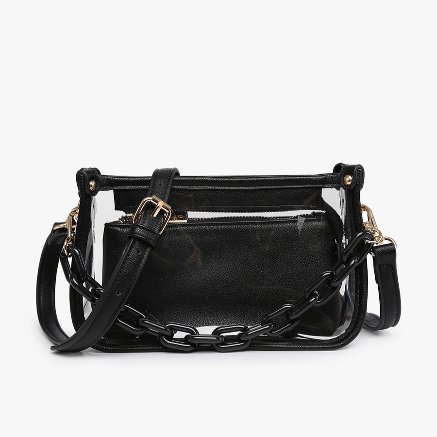 Jessica Clear Crossbody w/ Chain Stadium Bag