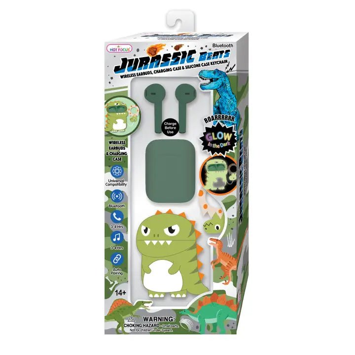 Unleash epic sound with the Jurassic Beats Wireless Earbuds Set! This dino-mite set includes a pair of wireless earbuds, a charging case to keep the music going, and a silicone case with a keychain for on-the-go convenience. Whether you're rocking out or relaxing, these earbuds deliver crisp, clear audio—because every adventure needs the perfect soundtrack! 🎵🦖🔊